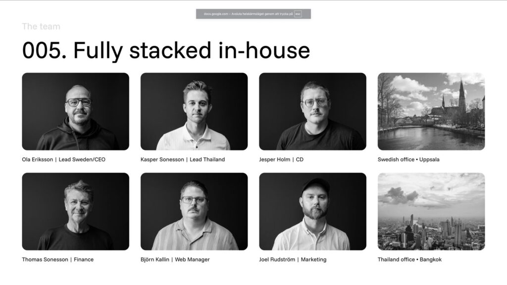 Vår andra marknad som vi lanserar parallellt med Sverige är som sagt Thailand. Ett av våra första projekt är tillsammans med jättehotellet St Regis i Bangkok som är en del av Marriott-kedjan. Ett väldigt spännande projekt som vi hoppas och tror skall öppna dörren för hotell över hela Thailand och kanske även i Sverige. Även co-lab med golfbanan Black Mountain i Hua Hin är under planering.